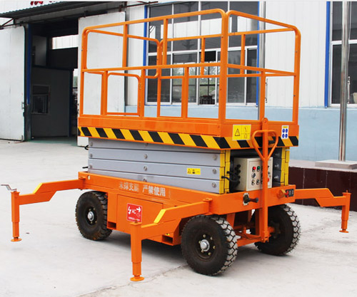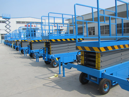 移動式液壓升降機主結構采用高強度矩形管制作,強度高,堅固耐用;設有升降臺超載液壓安全保護系統;有底座、臂架和工作臺三部分組成。底座采用槽鋼焊接而成;臂架為剪叉交鏈式垂直升降;設有防止管路爆裂的防墜安全保護系統;設有停電時應急下降的手控下降閥;采用精磨的液壓油缸體,進口密封件,保障油缸良好的密封性能;移動式液壓升降機防護欄高度在900MM-1200MM之間,客戶可根據要求選擇護欄高度;加配上手動液壓裝置,可在停電或無電源場所照常升降工作;并可加伸縮平臺,在平臺長度不足時可延伸至所需位置,從而提高工作效率;可根據使用場地選擇實心輪胎和充氣輪胎。