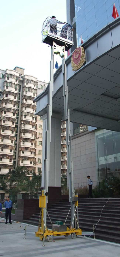鋁合金液壓升降機主體采用高強度鋁合金材質構成,具有造型美觀、體積小、重量輕、升降平衡、安全可靠等優點,廣泛用于工廠、賓館、餐廳、車站、機場影劇院、展覽館等場所。該升降機承載能力強,適合于兩人(可攜帶一定的重量工具和材料)同時登高作業;還可根據不同環境訂制成各種非標產品,以滿足不同需要;是保養機具、油漆裝修、調換燈具、電器、清潔保養等用途的伴侶。