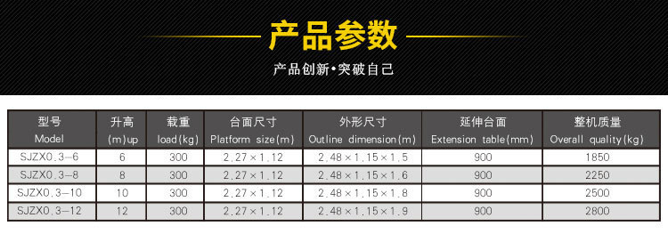 1、 剪叉式主體結(jié)構(gòu)和安全護(hù)欄,根據(jù)需要做伸縮臺(tái)面