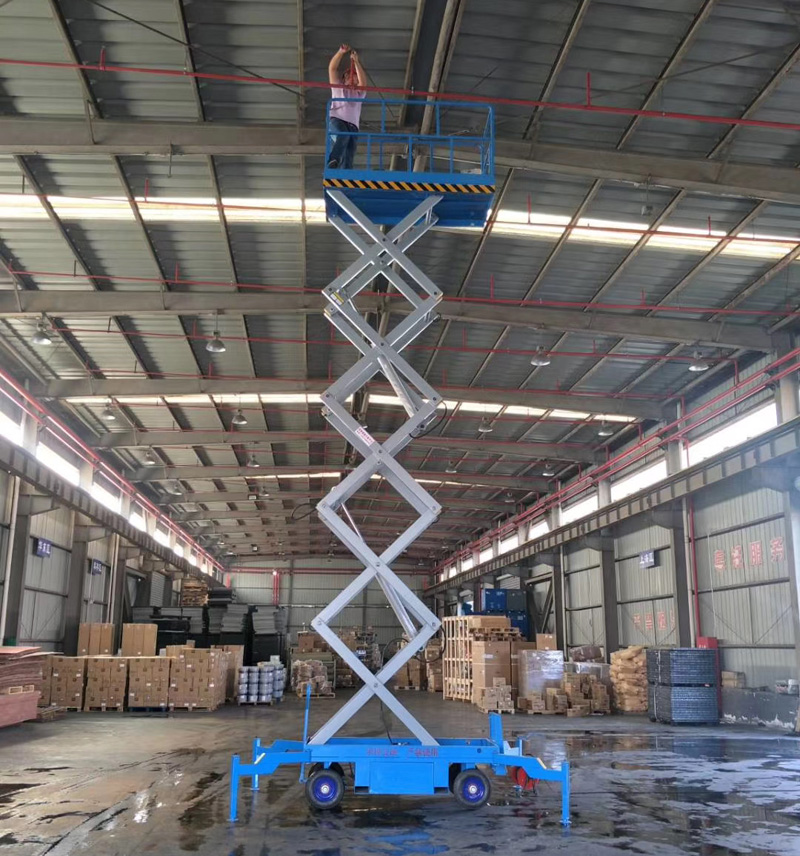 移動剪叉式升降機是用途廣泛的高空作業裝備,該產品適用于各行業高處設備安裝、檢驗、維修、裝飾等可移動性高空作業。
